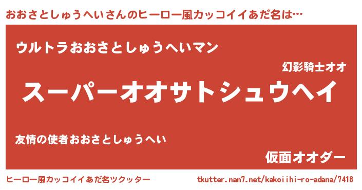 | 胡散臭い通販商品みたいなあだ名 | 『モテモテ間違いなし霊験あらたかなお札…その名も「おおさとしゅうへい」』 |