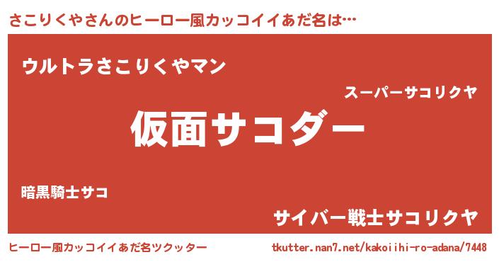 | 女子向けラノベタイトル風あだ名 | 『さこりくやが死なない童話 林檎のさこりくやの診療簿』 |
