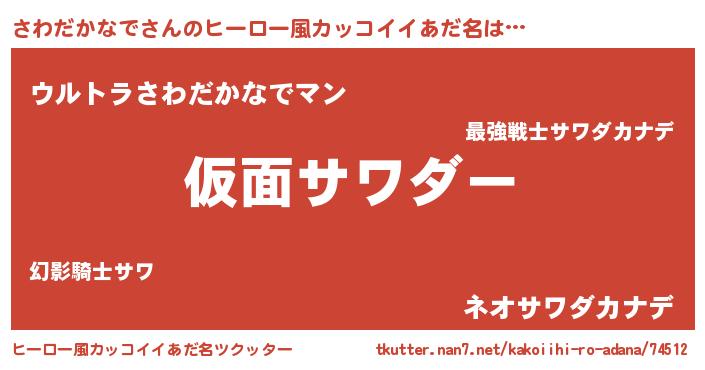 | 男性向けラノベタイトル風あだ名 | 『魔弾の王とさわだかなで』 |