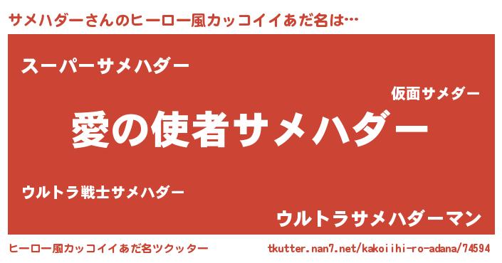 | 男性向けラノベタイトル風あだ名 | 『冴えないサメハダーの育てかた』 |