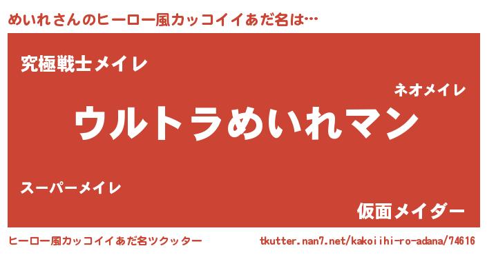| 意味不明あだ名 | 『めいれフォーエバー』『自称めいれ』 |