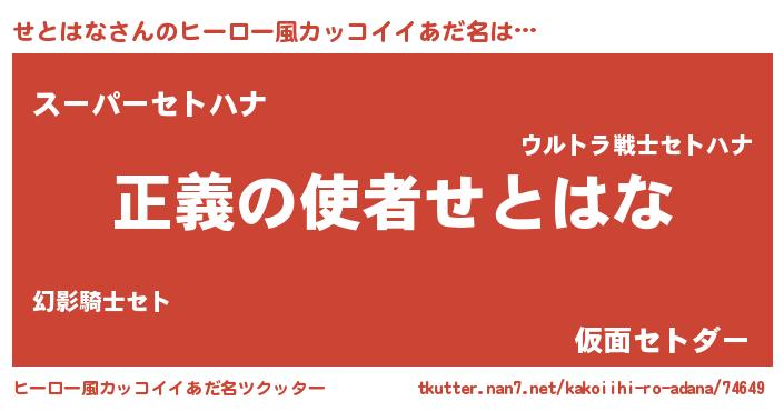 | 男性向けラノベタイトル風あだ名 | 『おまえをオタクにしてやるから、俺をせとはなにしてくれ! 』 |