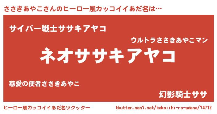 | 女子向けラノベタイトル風あだ名 | 『異世界で失敗しない100のささきあやこ』 |