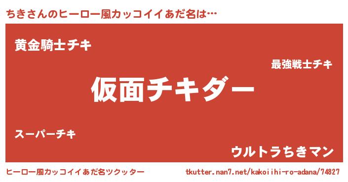 | 男性向けラノベタイトル風あだ名 | 『この素晴らしい世界にちきを!』 |