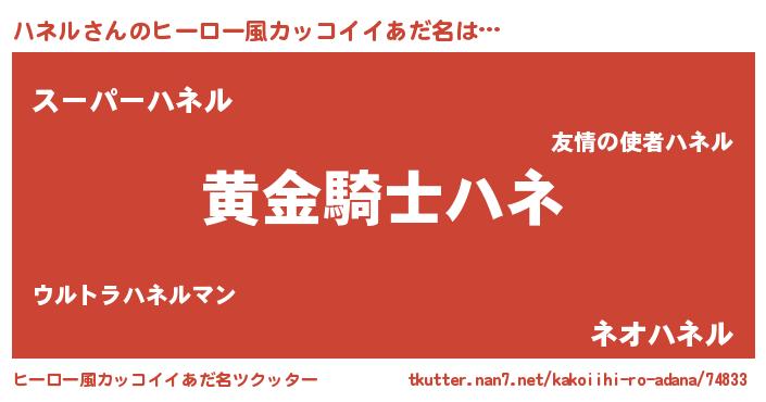 | 胡散臭い通販商品みたいなあだ名 | 『信頼と実績のサプリメント…その名も「ハネル」』 |