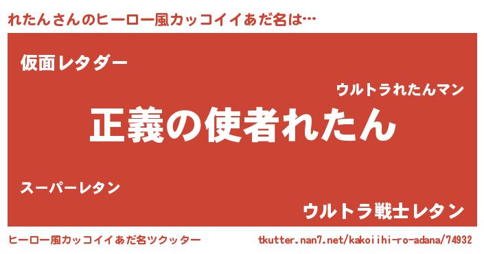 れたんさんのヒーロー風カッコイイあだ名をツクッター!