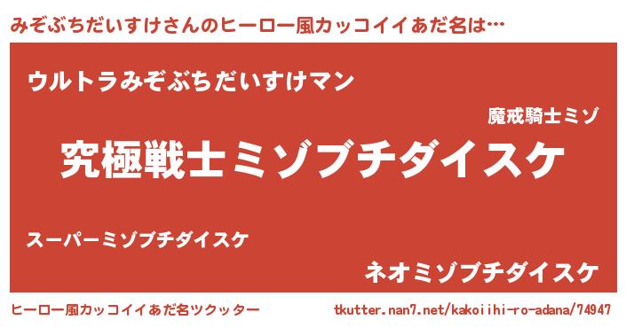 | 女子向けラノベタイトル風あだ名 | 『みぞぶちだいすけストレイドッグス』 |