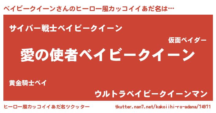 | 女子向けラノベタイトル風あだ名 | 『ベイビークイーン恋絵巻』 |