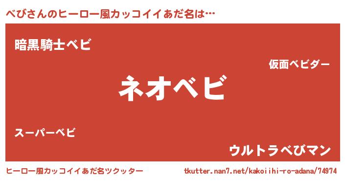 | 男性向けラノベタイトル風あだ名 | 『べびという概念が存在しない退屈な世界 』 |
