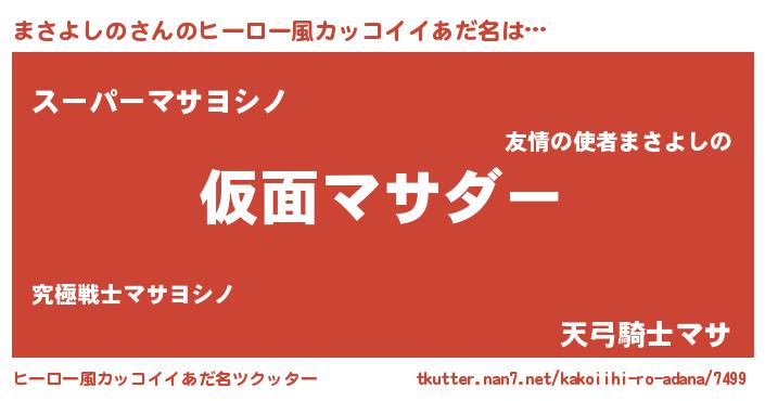 | 男性向けラノベタイトル風あだ名 | 『まさよしの~年齢イコール彼女いない歴の魔法使い~』 |