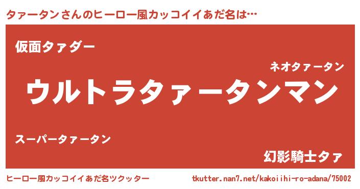 | 男性向けラノベタイトル風あだ名 | 『タァータンに滅ぼされるだけの簡単なお仕事です』 |