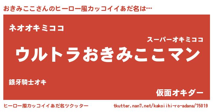 | 男性向けラノベタイトル風あだ名 | 『おきみここ~年齢イコール彼女いない歴の魔法使い~』 |