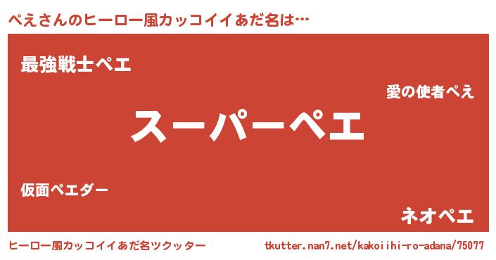 | 男性向けラノベタイトル風あだ名 | 『ぺえの憂鬱』『転生したらぺえだった件』 |