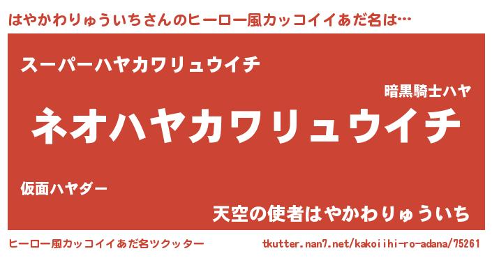 | ヘコむあだ名 | 『はやかわりゅういち(笑)』『はやっふぃ~』 |