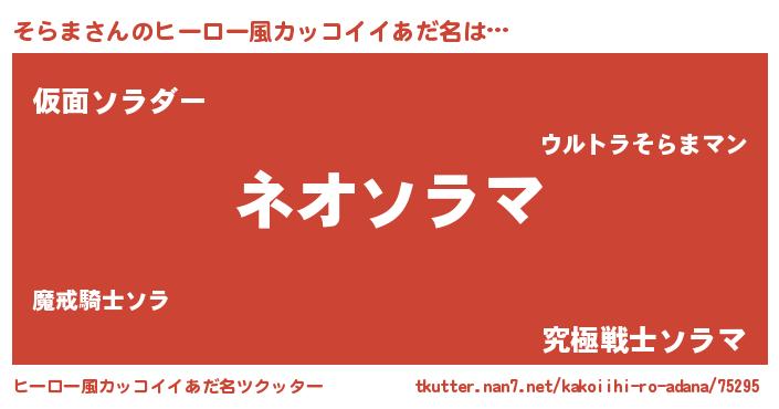 | 男性向けラノベタイトル風あだ名 | 『そらまという概念が存在しない退屈な世界 』 |