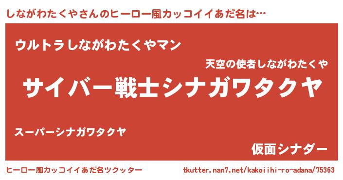 | 意味不明あだ名 | 『自称しながわたくや』 |