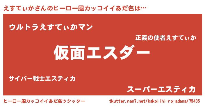 | 男性向けラノベタイトル風あだ名 | 『魔弾の王とえすてぃか』 |