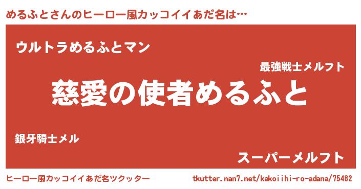 | 女子向けラノベタイトル風あだ名 | 『死神めるふとの再婚』 |