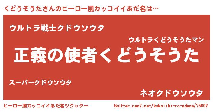 | 男性向けラノベタイトル風あだ名 | 『クドウソウタスレイヤー』 |