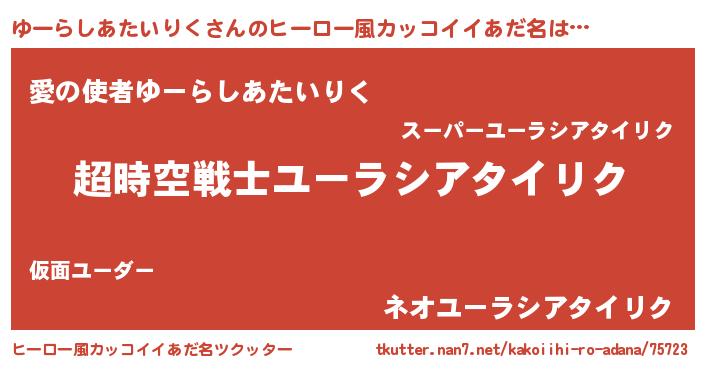 | 意味不明あだ名 | 『自称ゆーらしあたいりく』 |