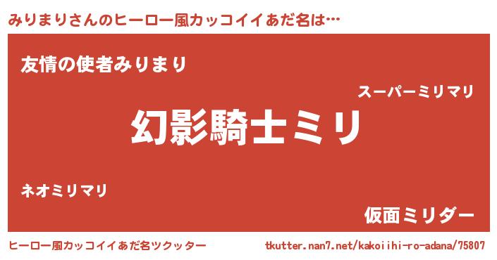 | 女子向けラノベタイトル風あだ名 | 『みりまり様がみてる』 |