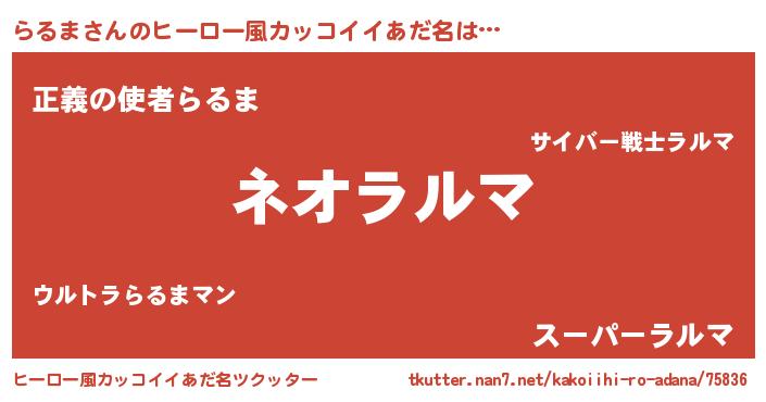 | 男性向けラノベタイトル風あだ名 | 『らるまという概念が存在しない退屈な世界 』 |