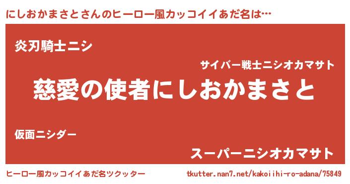 | 男性向けラノベタイトル風あだ名 | 『ノーゲーム・ノーニシオカマサト』 |