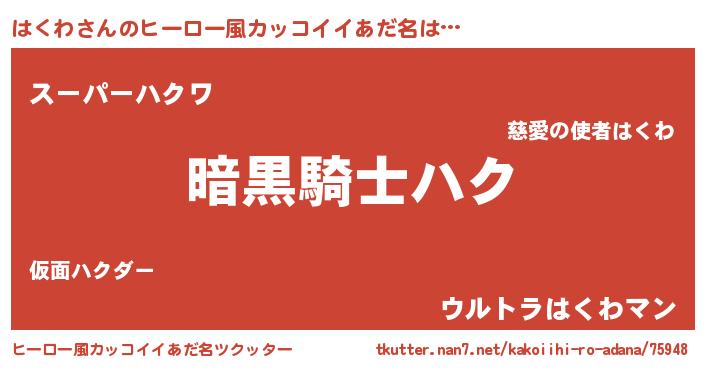 | 男性向けラノベタイトル風あだ名 | 『はたらくはくわさま!』 |