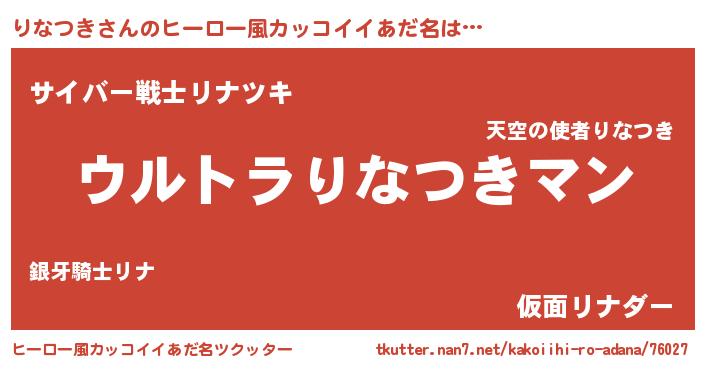 | 男性向けラノベタイトル風あだ名 | 『うちの娘の為ならば、俺はもしかしたらりなつきも倒せるかもしれない。』 |
