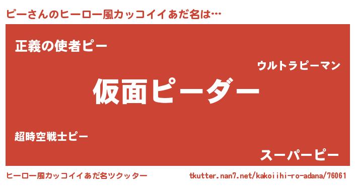 | 女子向けラノベタイトル風あだ名 | 『ピーの玉の輿計画!』『死神ピーの再婚』 |