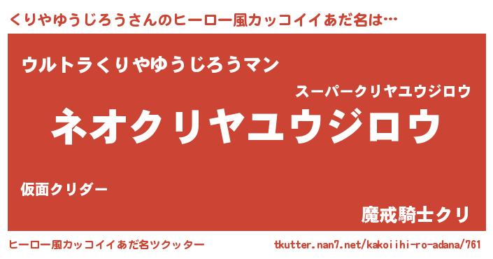 | 意味不明あだ名 | 『永久保存くりやゆうじろう』 |