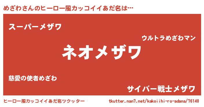 | 男性向けラノベタイトル風あだ名 | 『めざわという概念が存在しない退屈な世界 』 |