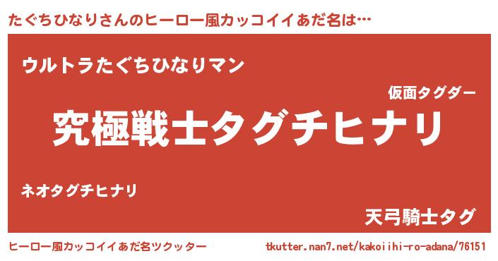 | 意味不明あだ名 | 『自称たぐちひなり』 |