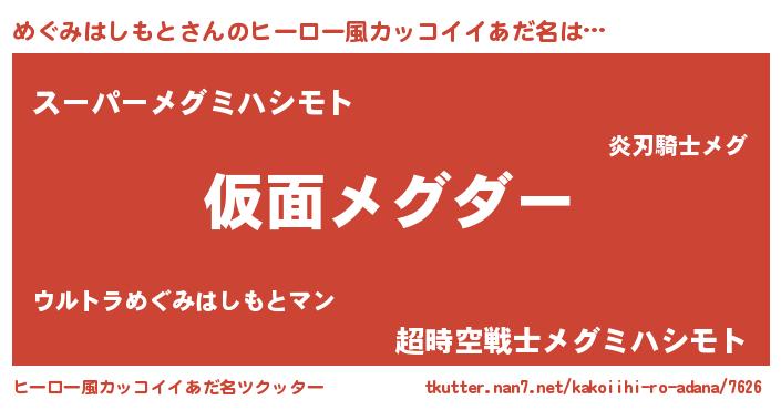 | 意味不明あだ名 | 『住所不定無職めぐみはしもと(62歳)』 |