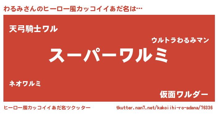 | 男性向けラノベタイトル風あだ名 | 『わるみの憂鬱』『はたらくわるみさま!』 |