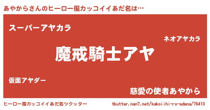 | 女子向けラノベタイトル風あだ名 | 『あやからの卵を拾いまして』 |