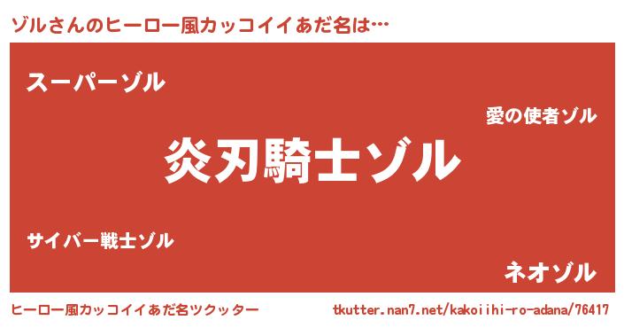 男性向けラノベタイトル風あだ名 | 『ゾルの嫁は女の子じゃないと思った?』 |