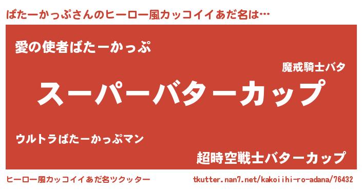 | 男性向けラノベタイトル風あだ名 | 『ばたーかっぷの憂鬱』 |