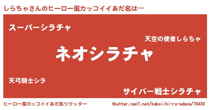 | 男性向けラノベタイトル風あだ名 | 『しらちゃという概念が存在しない退屈な世界 』 |