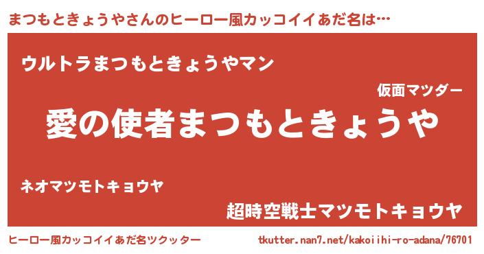 | 女子向けラノベタイトル風あだ名 | 『まつもときょうや恋絵巻』 |