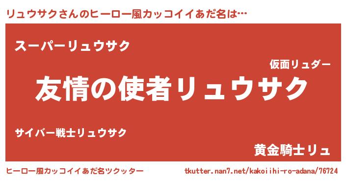 | 男性向けラノベタイトル風あだ名 | 『おまえをオタクにしてやるから、俺をリュウサクにしてくれ! 』 |
