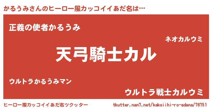 | 男性向けラノベタイトル風あだ名 | 『かるうみの嫁は女の子じゃないと思った?』 |