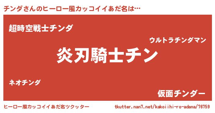 チンダさんのヒーロー風カッコイイあだ名をツクッター!