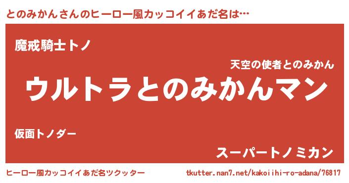 | 意味不明あだ名 | 『とのみかんフォーエバー』 |