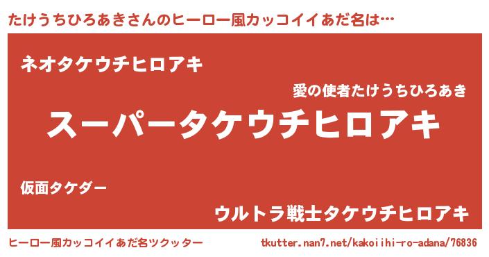 | ヘコむあだ名 | 『たけにー』『たけうちひろあき(震え声)』 |
