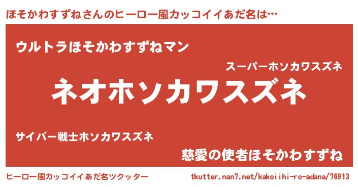 | 胡散臭い通販商品みたいなあだ名 | 『絶対に幸福をもたらす健康食品…その名も「ほそかわすずね」』 |