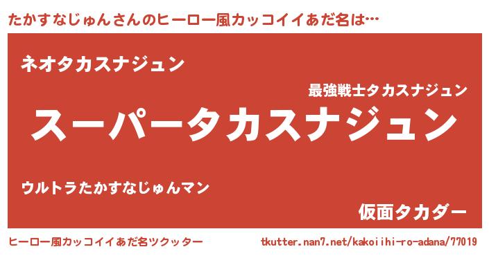 | 男性向けラノベタイトル風あだ名 | 『タカスナジュンアートオンライン』 |