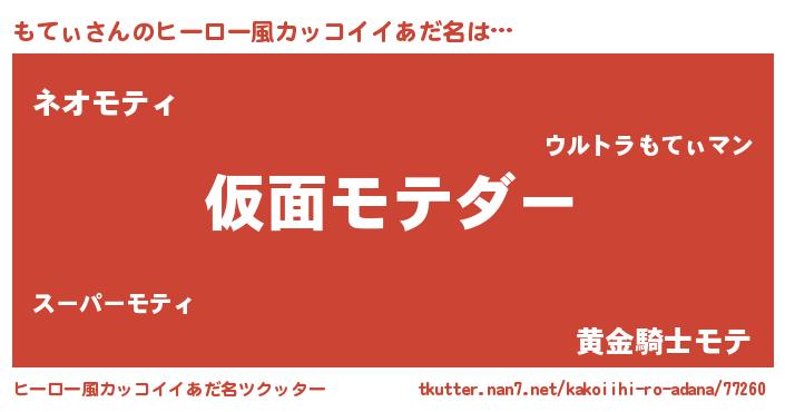 | 男性向けラノベタイトル風あだ名 | 『この素晴らしい世界にもてぃを!』 |