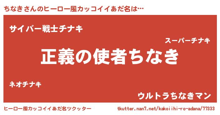| 男性向けラノベタイトル風あだ名 | 『はたらくちなきさま!』『緋弾のチナキ』 |