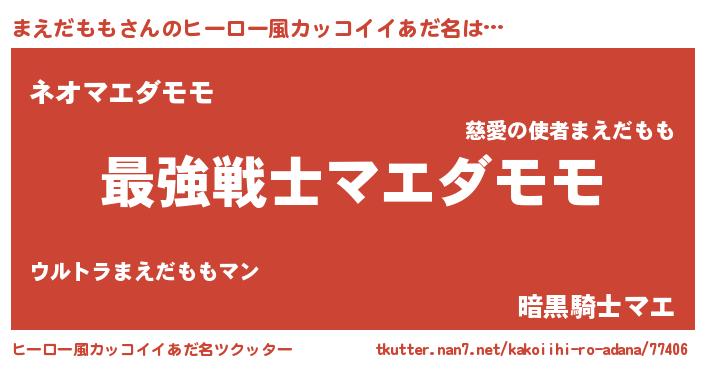 | 男性向けラノベタイトル風あだ名 | 『まえだもも~年齢イコール彼女いない歴の魔法使い~』 |